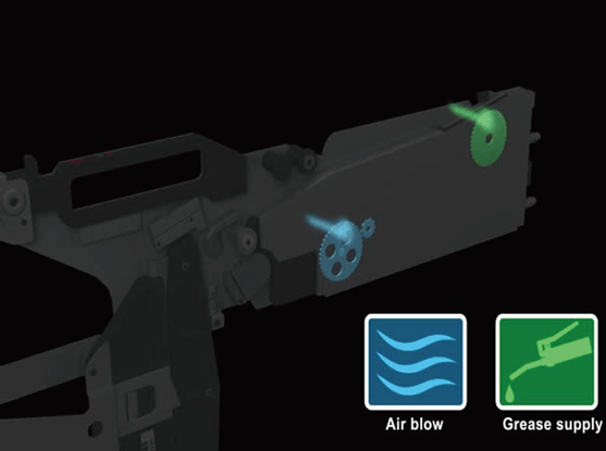 ● 將齒輪部的污垢連同舊的潤滑油除去,重新加潤滑油;